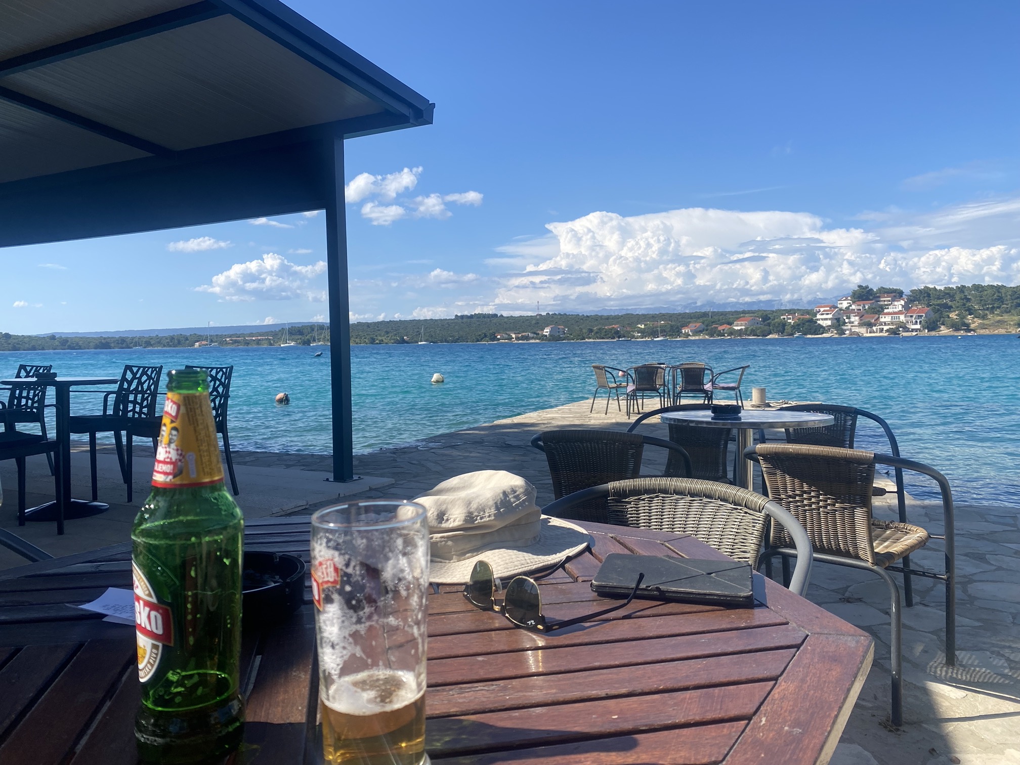 “Byn” i sig var inte mycket att hurra för, en liten och överprisad matbutik med ett sortiment som skulle få en cuban med ransoneringskort att bli besviken, vad vi däremot hittade längs strandpromenaden var en trevlig restaurang/pub med helt klart humana priser, det blev både en och två öl den eftermiddagen.