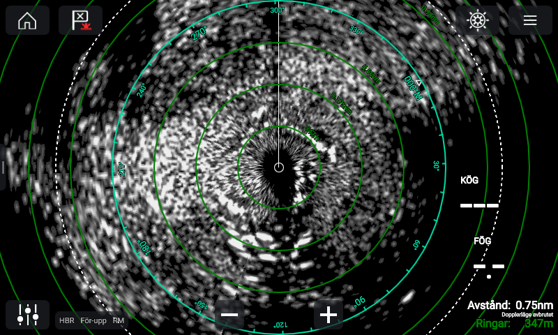 Jag nämnde att vi stannade lite längre då vi hade halvtråkigt väder på ingång. Vi fick både en hel massa vind och ganska rejält med regn en av nätterna. När det är natt och busväder brukar vi ha radarn igång för att se andra båtar vad som händer runt oss då det händer både lite titt som tätt att ankare släpper och båtar börjar dragga när det friskar i. Bilden ovan är radarskärmen när det öste ner som bäst, i vanliga fall kan man se både land och båtar som vita “blobbar” men just den här natten gick det sådär. I snöröken på bilden döljer sig minst 5 båtar och en en hel del “vik” (bilden nedan) runt oss. Nätter som denna är det skönt att man gjort hemläxan och både ankrat långt från andra båtar med både snubber och massor av kätting ute.