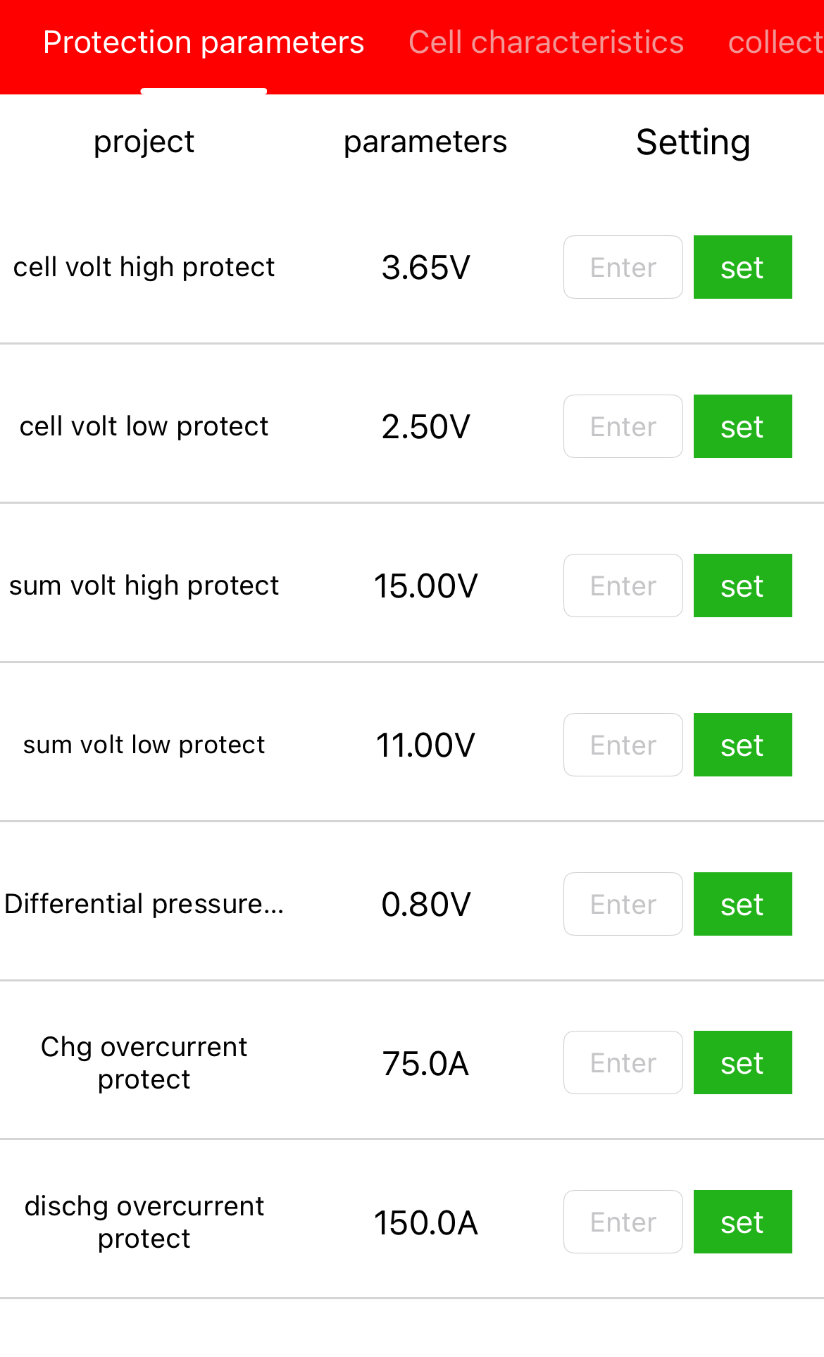 Vi börjar med inställningen av våra BMSer, kort och gott är de ställda att fungera som skydd för våra batterier och styr därför inget med laddningen (det överlämnar vi med varm hand åt vår MPPT). Det betyder att BMSen fungerar som “säkring” om vår laddkrets skulle hitta på något oförutsett. Skulle vi ladda för mycket så kopplar vår BMS bort batteriet om laddningen överstiger 3,65V per cell eller 15,00V totalt, detsamma gäller om volten kryper under 2,50V per cell eller under 11,00V totalt. Våra BMSer skyddar även batteriet om laddningen skulle överskrida 75A eller uttaget från batteriet skulle ta sig upp till 150A, då våra batterier är monterade parallellt betyder det att vi skulle behöva ladda över 150A eller dra över 300A för att banken skulle kopplas bort vi har inte tillräckligt med elektriska apparater att koppla in för att komma upp till de nivåerna.