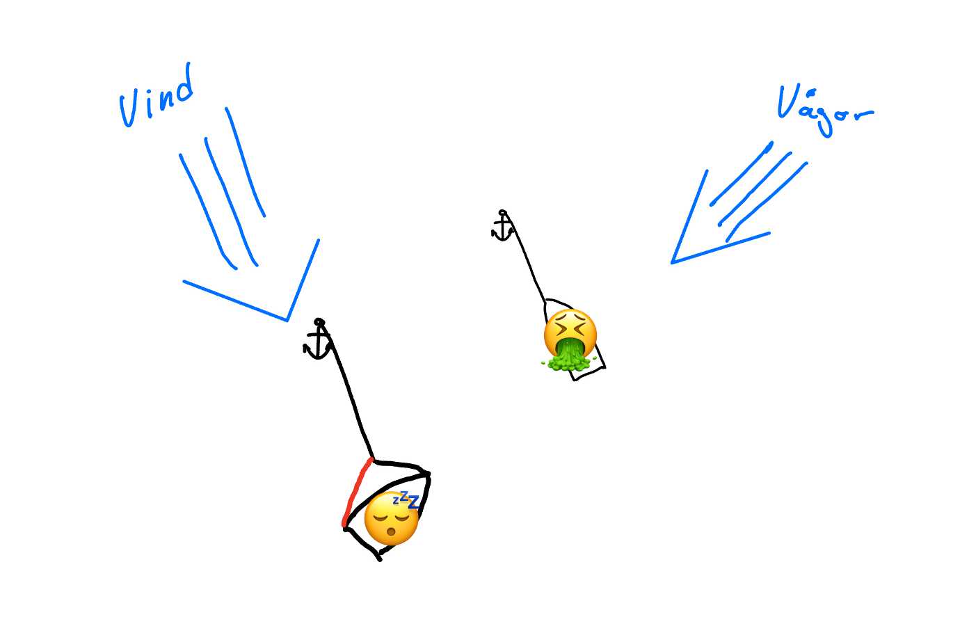 - Vad passar din båt och besättning bäst, att lägga ut ankaret i aktern för att bromsa farten och fortfarande kunna styra utför branta vågor eller i stäven för att rida ut stormen och låta vågorna bryta över däck?