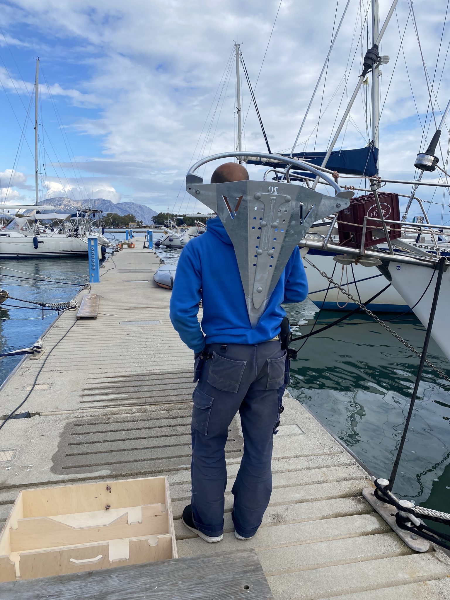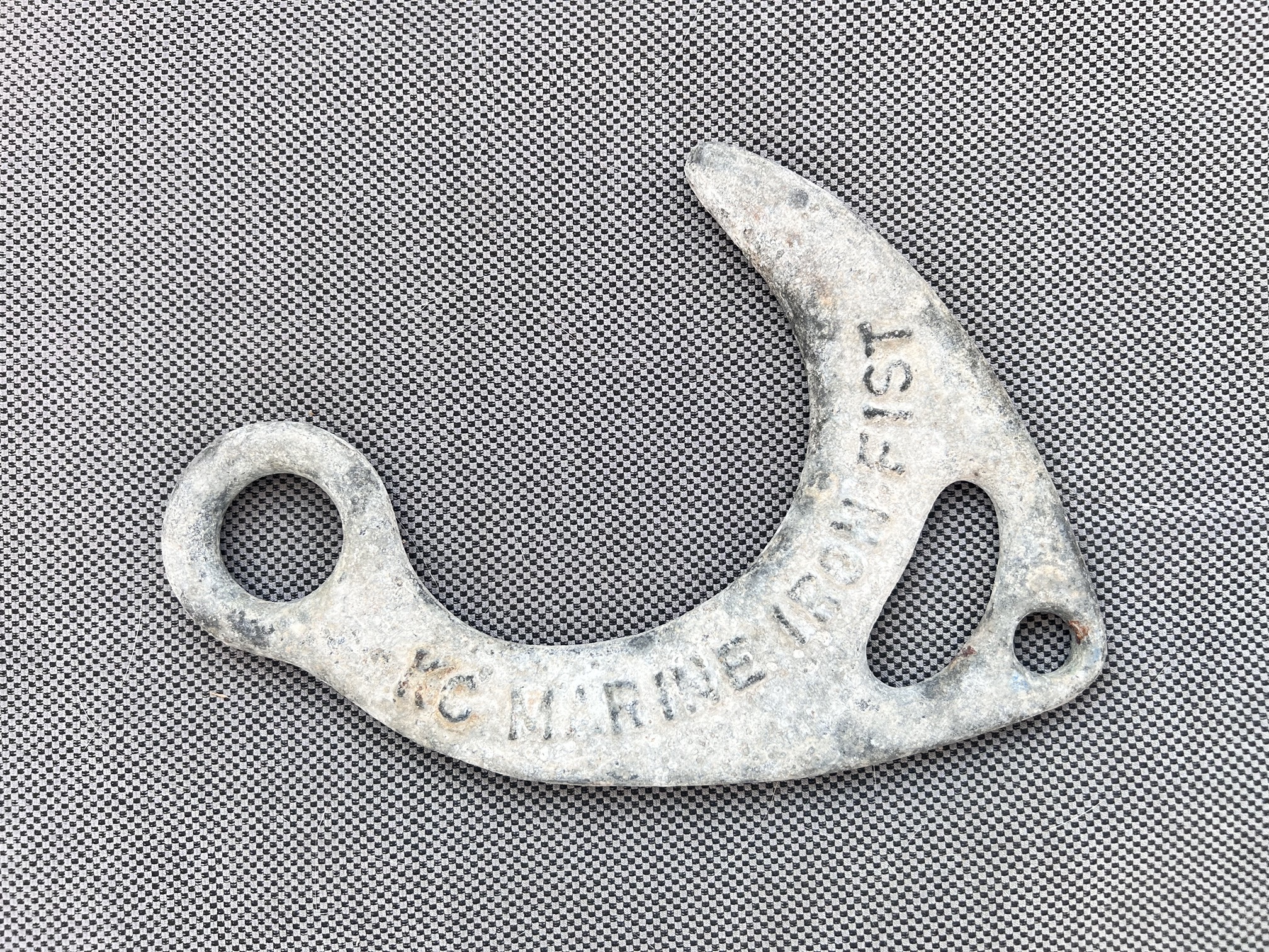En liten smidig krok som används för att lyfta av eventuella kättingar som lagts över vår när vi blir tvingade att ankra mot kajer där charterbåtar kan dyka upp.