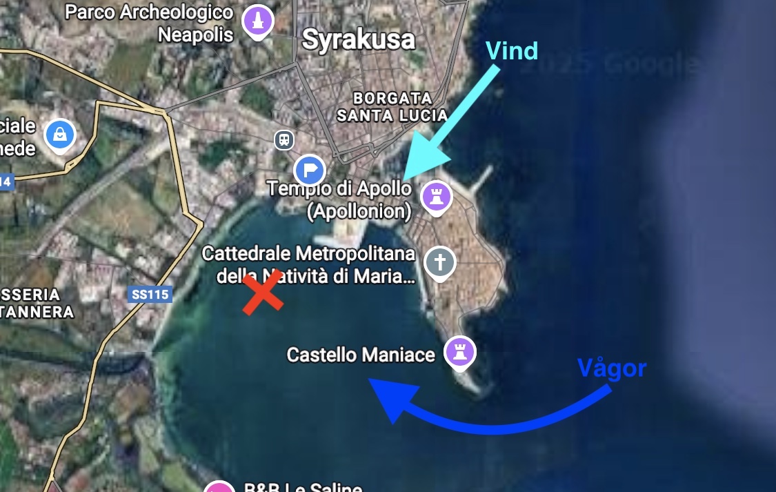 Den här tekniken har räddat vår nattsömn mer än en gång när dyningar beslutar sig för att smyga runt uddar in på ankringsplatser framförallt på ankringen utanför Syrakusa på Sicilien.