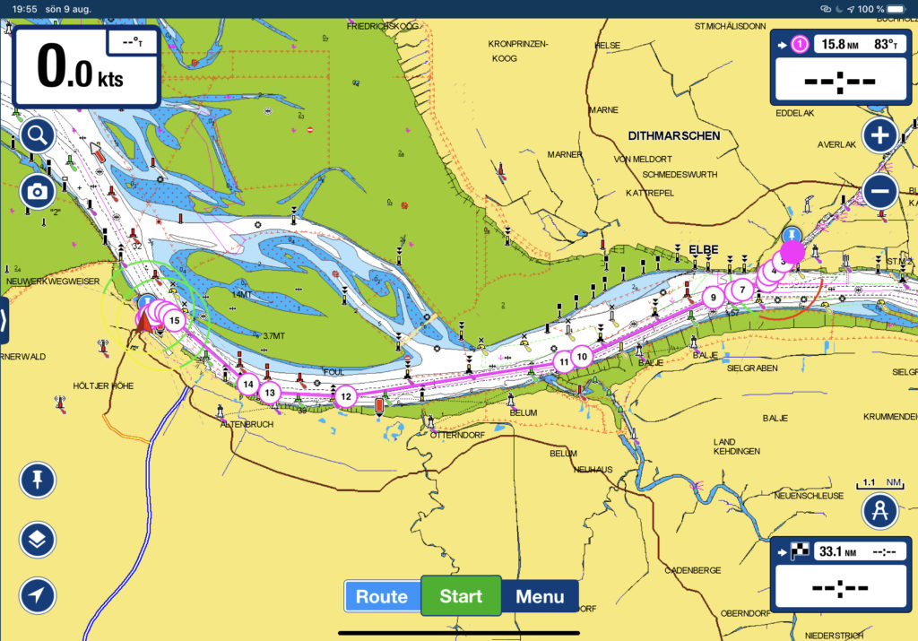 Loggdatum: 9 aug. 2020 Rutt: Brunnsbüttel – Cuxhaven Tid: 09:00 – 11:47 ( 2h 47min ) Distans: 17,7 nm Snittfart: 5,4 knots –> Max speed: 8,3 knots #happyface