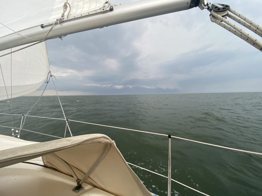 Beside the engine trouble everything was just perfect till some dark clouds showed up in the horizon and the rumble they came with gave away that they brought both rain and thunder. At this point we made or first mistake #1, the only thing we asked ourselves was. “I wonder will it rain?” (Sailing idiots…)