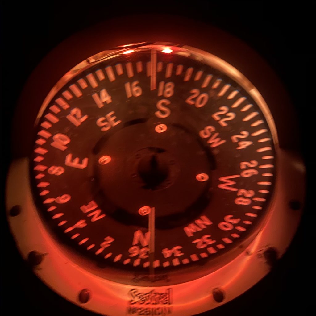 When we do night sailing we have been trying different alternatives, this time we aimed at 3 hours sleep. We tried 4 hours once and it was really hard to stay awake, Tony usually grab a few minutes of sleep here and there during his watch when nothing is around so I guess it’s not as hard for him.Last trip we tried 2 hours and that was horrible so this jump we aimed for 3. It was kind of ok this time just a bit lonely when the moon disappeared and the sky was covered by black clouds and the only thing you could see was the compass.