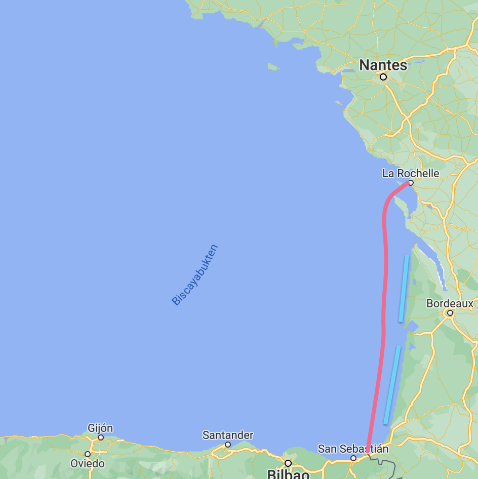 Frogs and oysters might be great but a sangria with some tapas is hard to beat so we decided it was time to head to Spain. The only twist was that Spain is kind of far away from La Rochelle and in between there are two active shooting ranges and only one marina that is insanely expensive so we had to plan for two nights at sea.