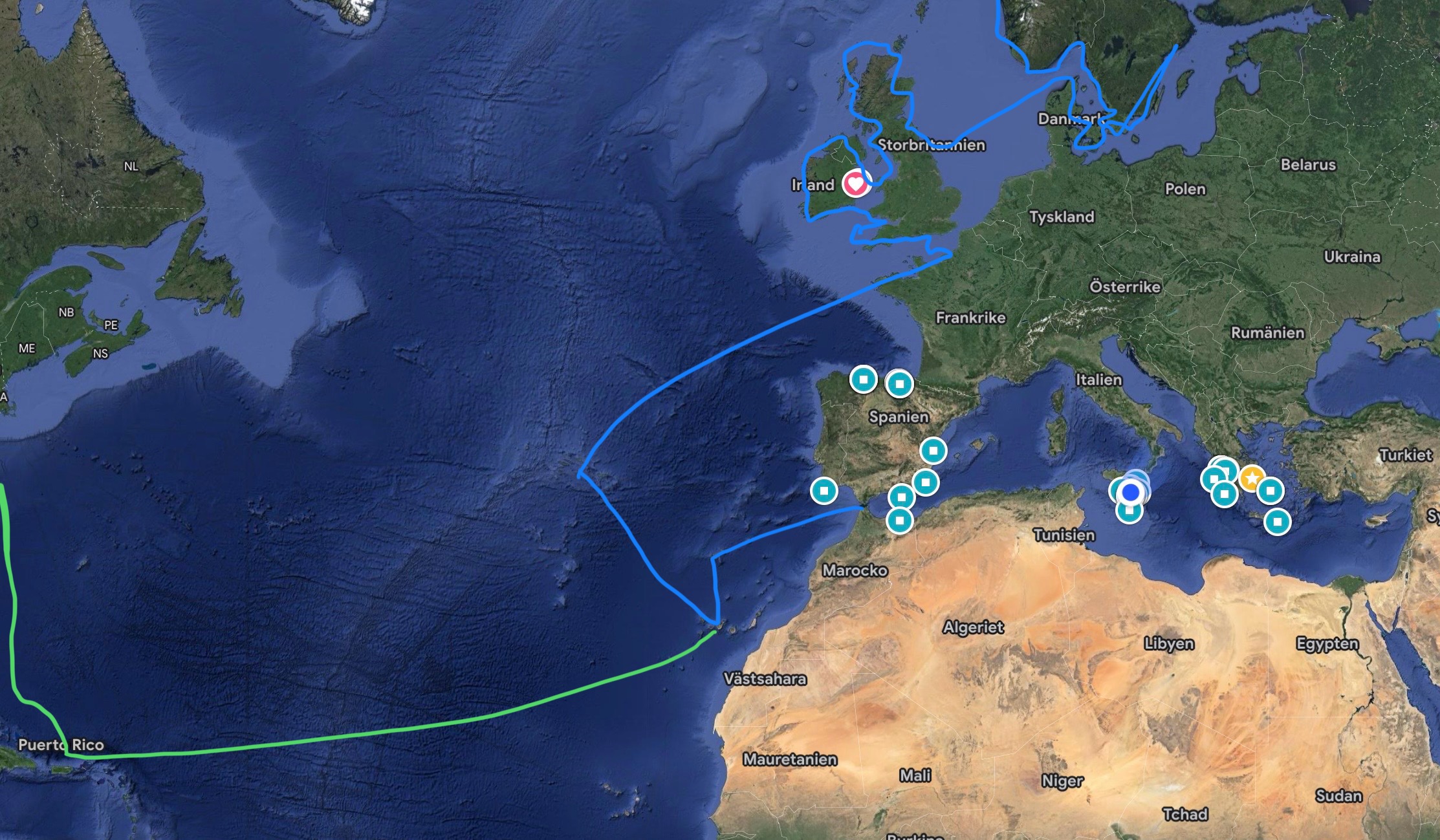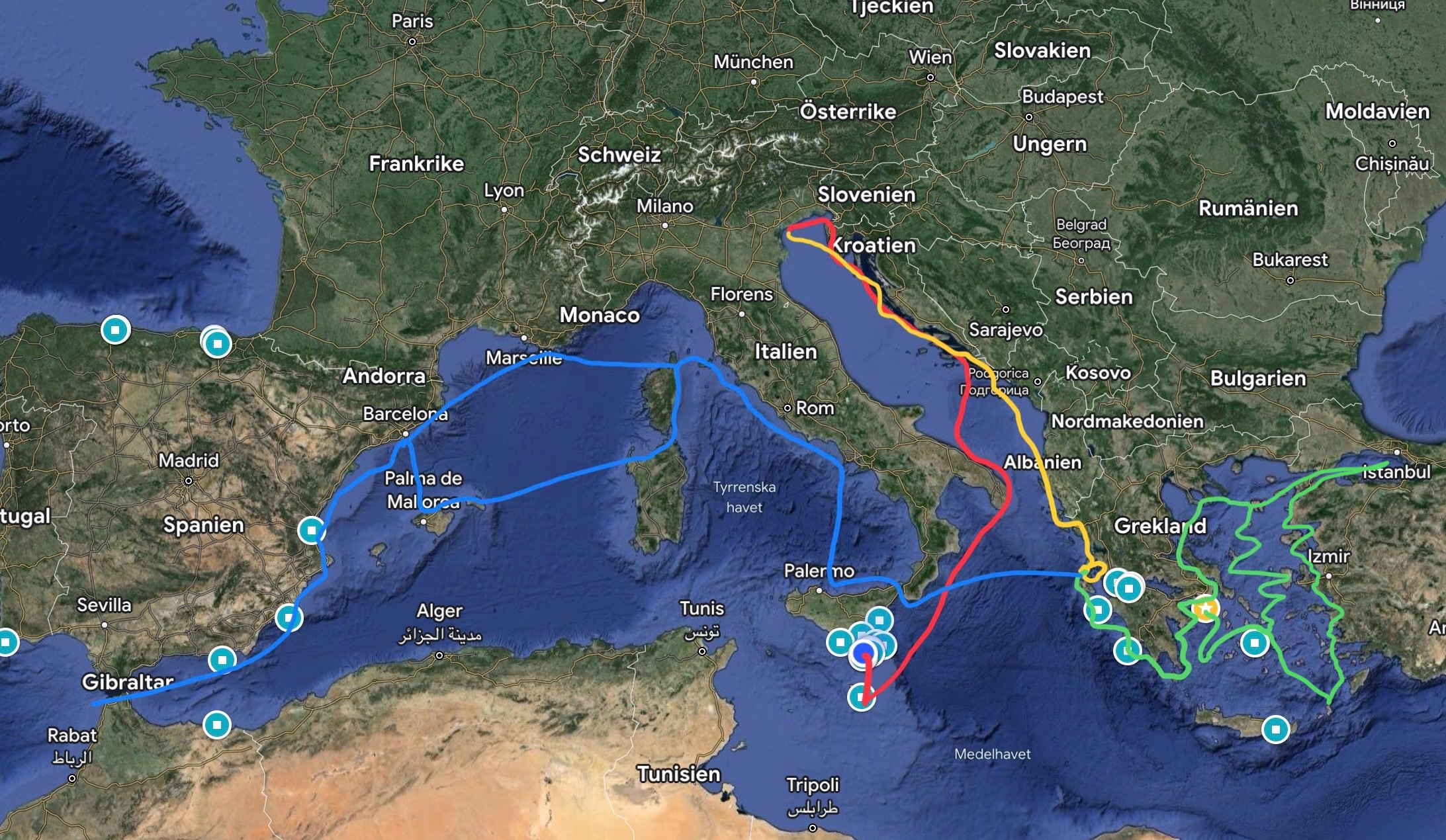 - Juni/juli: Kroatien/Venedig/Kroatien (grön)