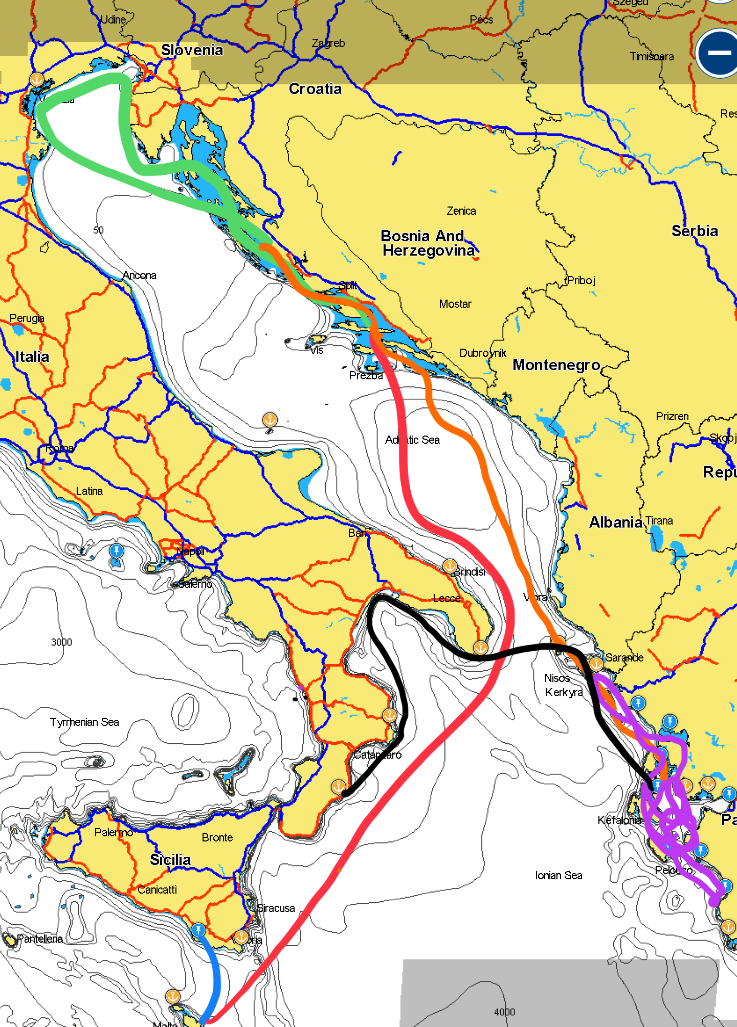 När vi fyllt både tanken och kylen på Malta sätter vi kurs norrut mot Venedig men på vägen passar vi på att besöka Kroatien för se om det verkligen är så illa som det sägs både med Boran, den kalla bergsvinden, och alla charterbåtar där uppe. Tror inte att det är så illa som det sägs.