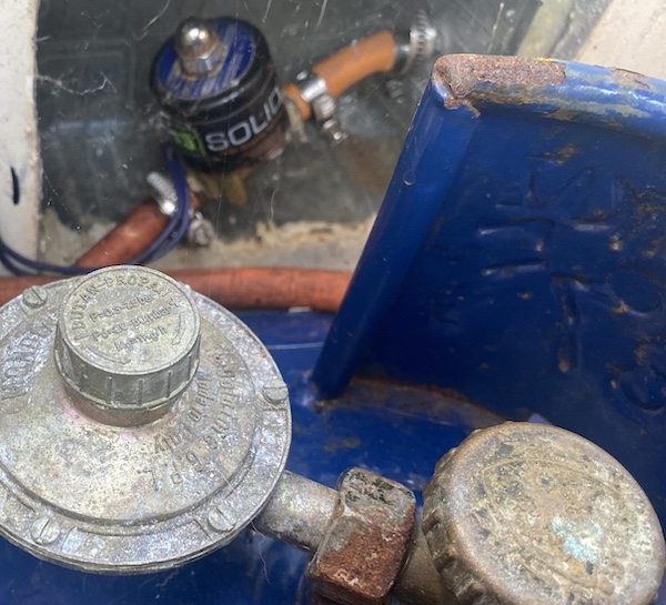 Det där med gas kan vara lite lurigt om man inte håller koll. Vi seglar som tidigare nämt en Malö 116 från 1984 (40 år gammal båt), vi har ett separat gasförråd i aktern med dränering i botten om flaskan skulle läcka och dragna kopparrör från lådan till spisen precis som många andra båtar. I det hela en helt vanlig standardlösning som hittas på drösvis med båtar, tills man tittar lite närmre på det hela, skrapar lite på ytan och tar sig en funderare på hur det verkligen ser ut.