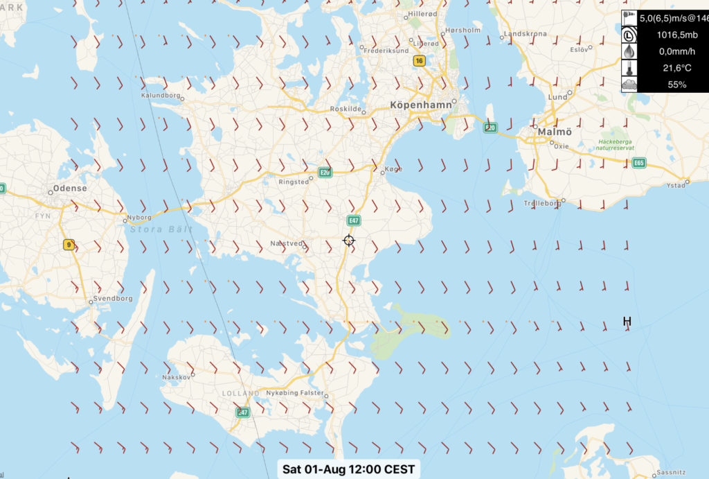 Efter ytterligare några timmar med mer eller mindre ingen vind alls gav vi upp och ändrade kursen mot Rødvig istället för Klintholm som det var tänkt. Vi kunde inte riktigt acceptera att behöva motorera 6 timmar redan första dagen bara för att komma dit det var tänkt.