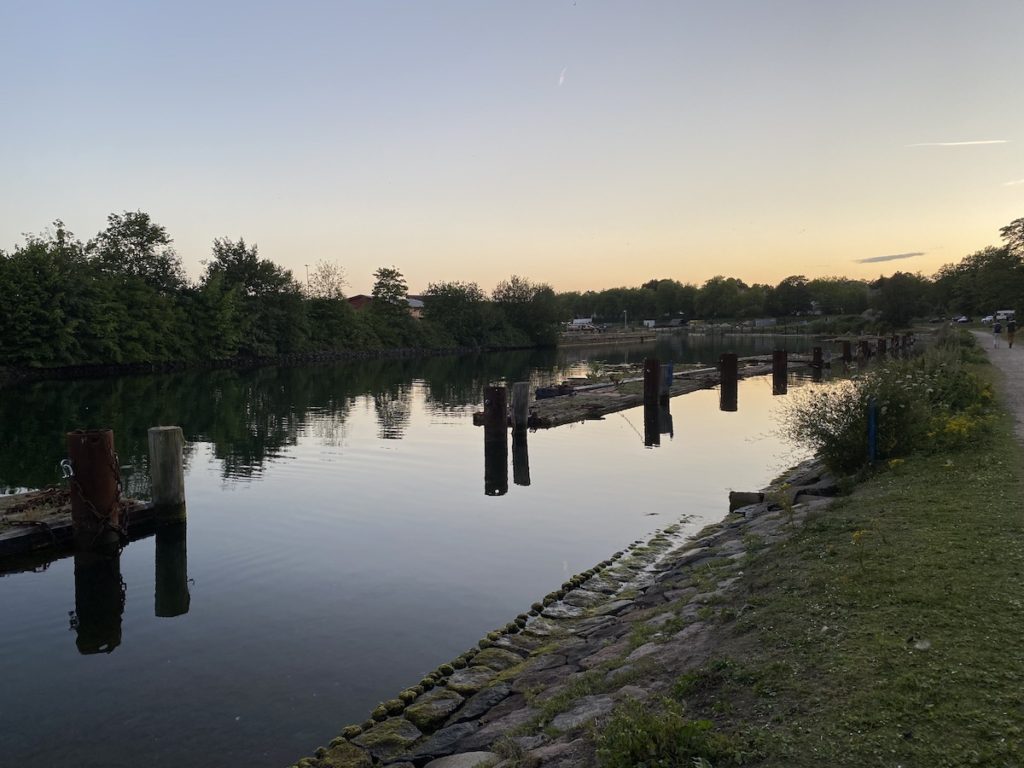 När vi var förtöjda kollade vi runt och hittade den gamla slussen, de gamla bryggorna fanns fortfarande kvar. Trevligt ställe förutom alla Kanadagäss som ockuperade området, tack för det Kanada… Om någon av dem bestämmer sig för att lämna “något” på vår båt kommer jag personligen förklara krig och börja tillverka dunjackor på heltid.