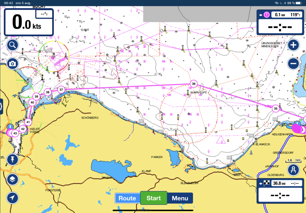 Dag: 6 Loggdatum: 5 aug. 2020 Rutt: Heiligenhafen – Kiel Tid: 07:15 – 18:55 (11h 38min) Distans: 56,3 nm Genomsnittlig hastighet: 4,6 knop Vind: 20 knop Regn: Inget Sikt: Utmärkt