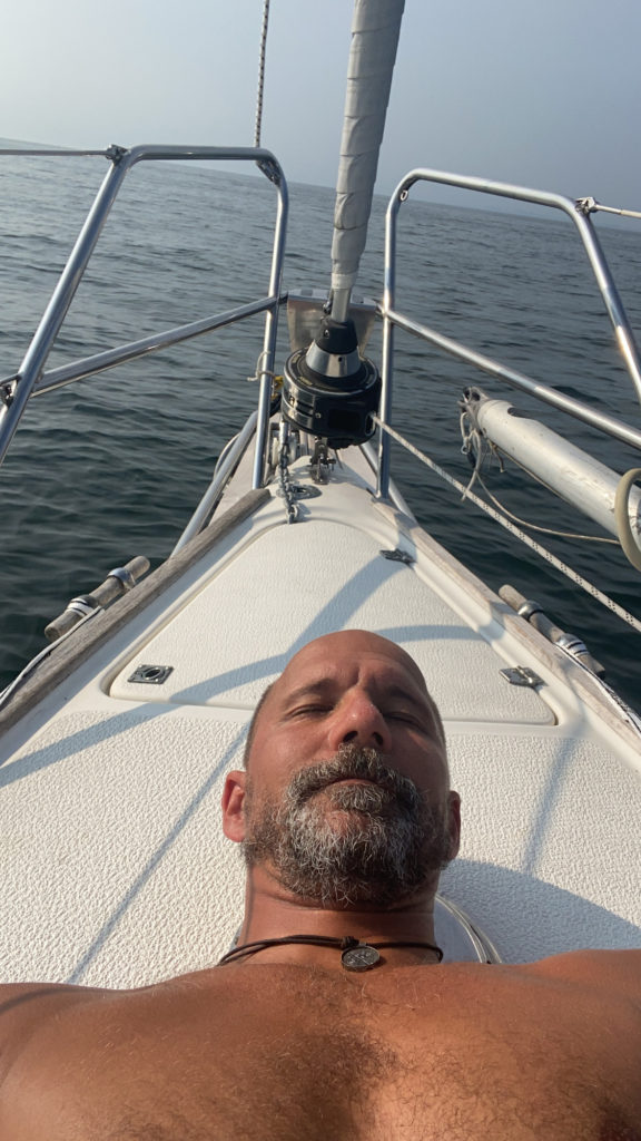 The tacking itself wasn’t a problem (we are getting quite used to that now), the problem was that there were a ton of super big ships all over the place and we had to use “their” lane to allow us to get some kind of wind.