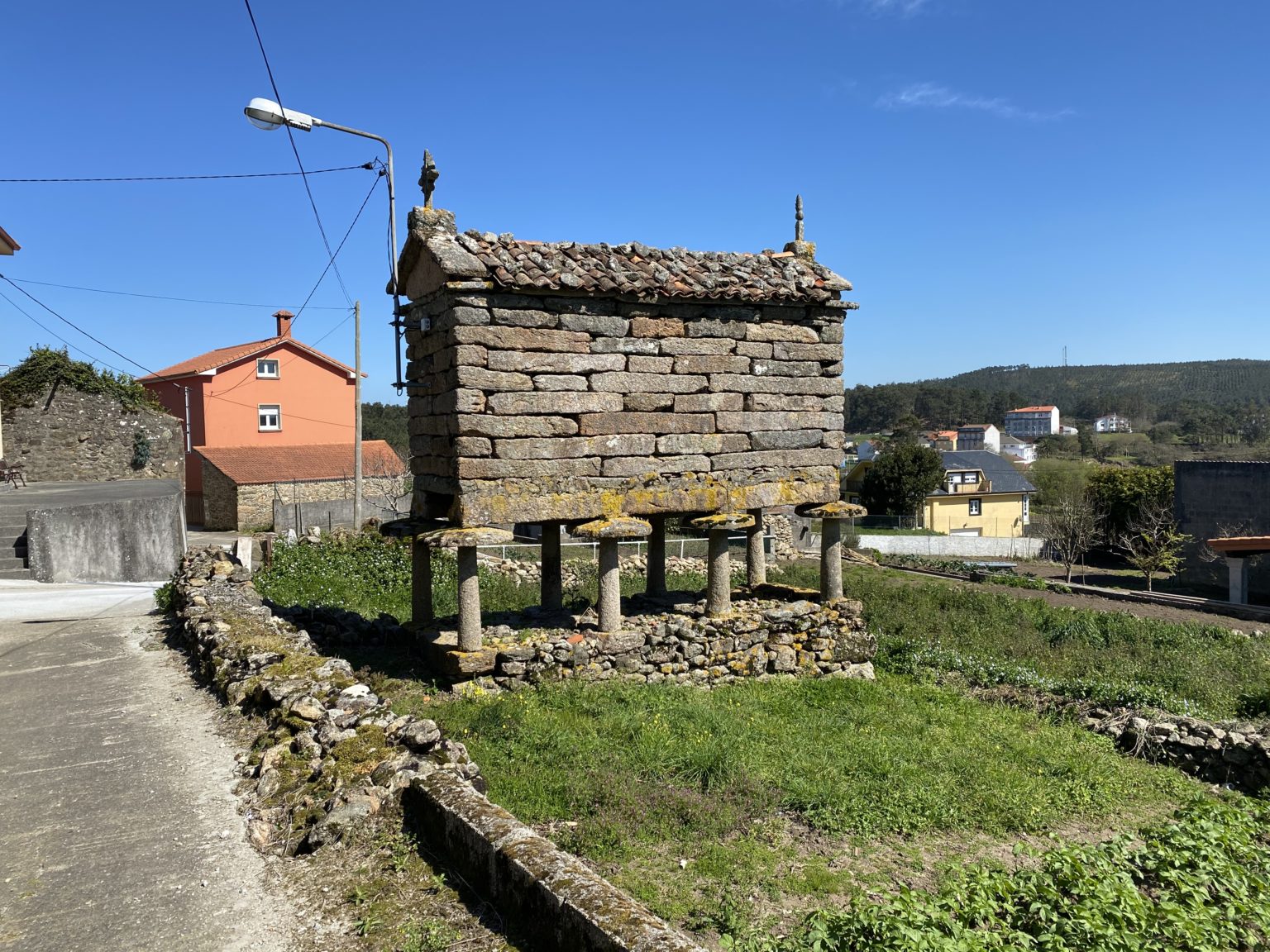 The next day was spent walking around in the village, we found some funny little stone houses on pillars in almost every garden we walked by. After some research we found out that they are called hórreos and that they are used for storing grain or other food. They stand on pillars with a slightly rounded stones on top to keep rodents out and the houses have slits in their walls to make sure the ventilation is good.